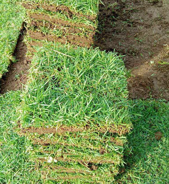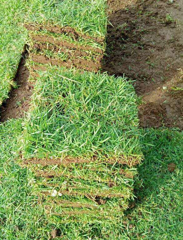 Dari foto yang Anda lihat, rumput Jepang dipasang dalam bentuk lembaran siap tanam, sehingga pemasangannya lebih cepat dan hasilnya lebih merata.